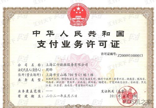 2、2007年,匯付天下出資成立上海匯付數(shù)據(jù)服務(wù)有限公司(以下簡(jiǎn)稱“公司”),匯付數(shù)據(jù)在2011年獲得中國(guó)人民銀行頒發(fā)的支付業(yè)務(wù)許可證,并于2016年續(xù)牌成功。
